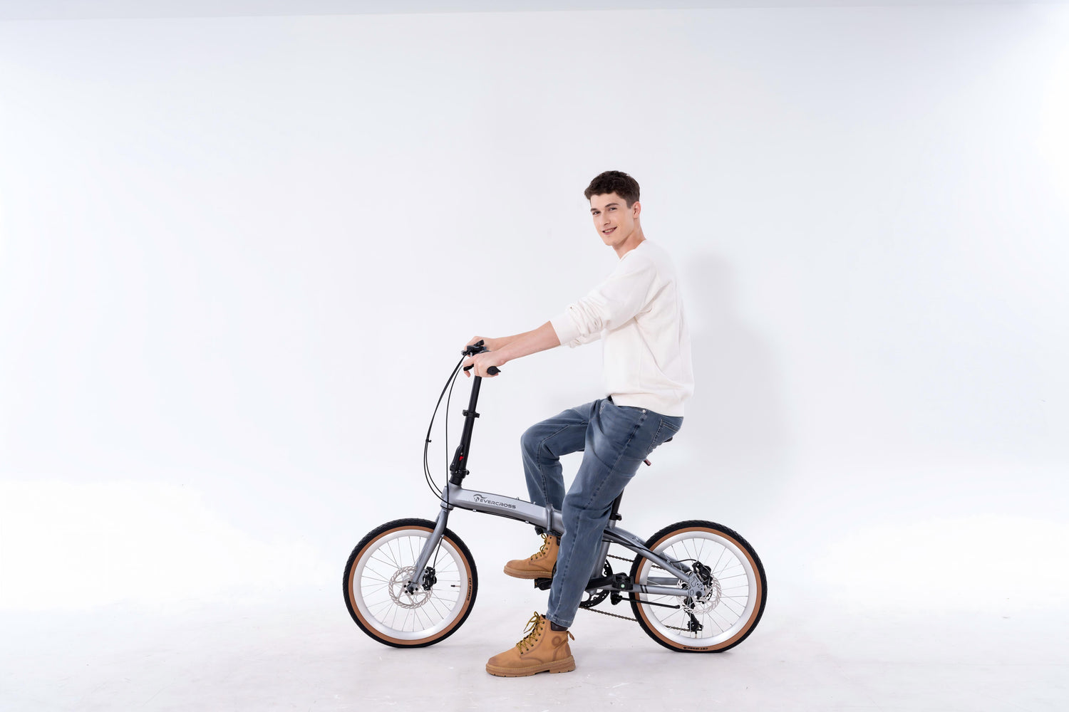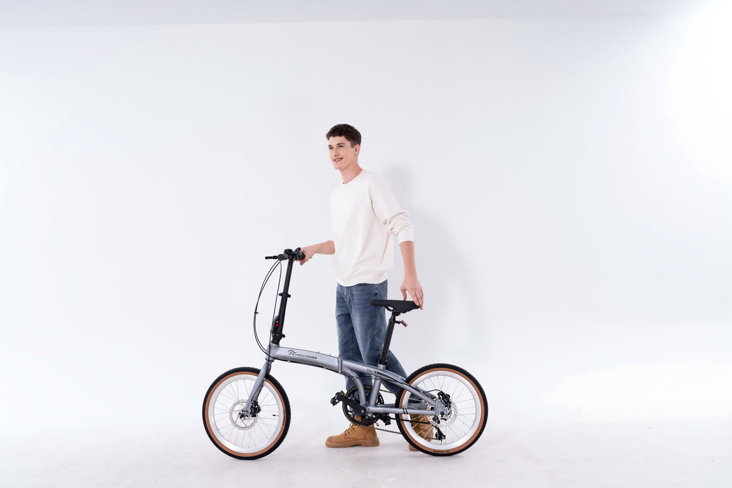 The EVERCROSS EM1 is a practical 20-inch folding bicycle designed for city commuting and everyday mobility. With its lightweight aluminum frame and compact folding system, it is ideal for riders who combine cycling with public transport or need space-saving storage.
