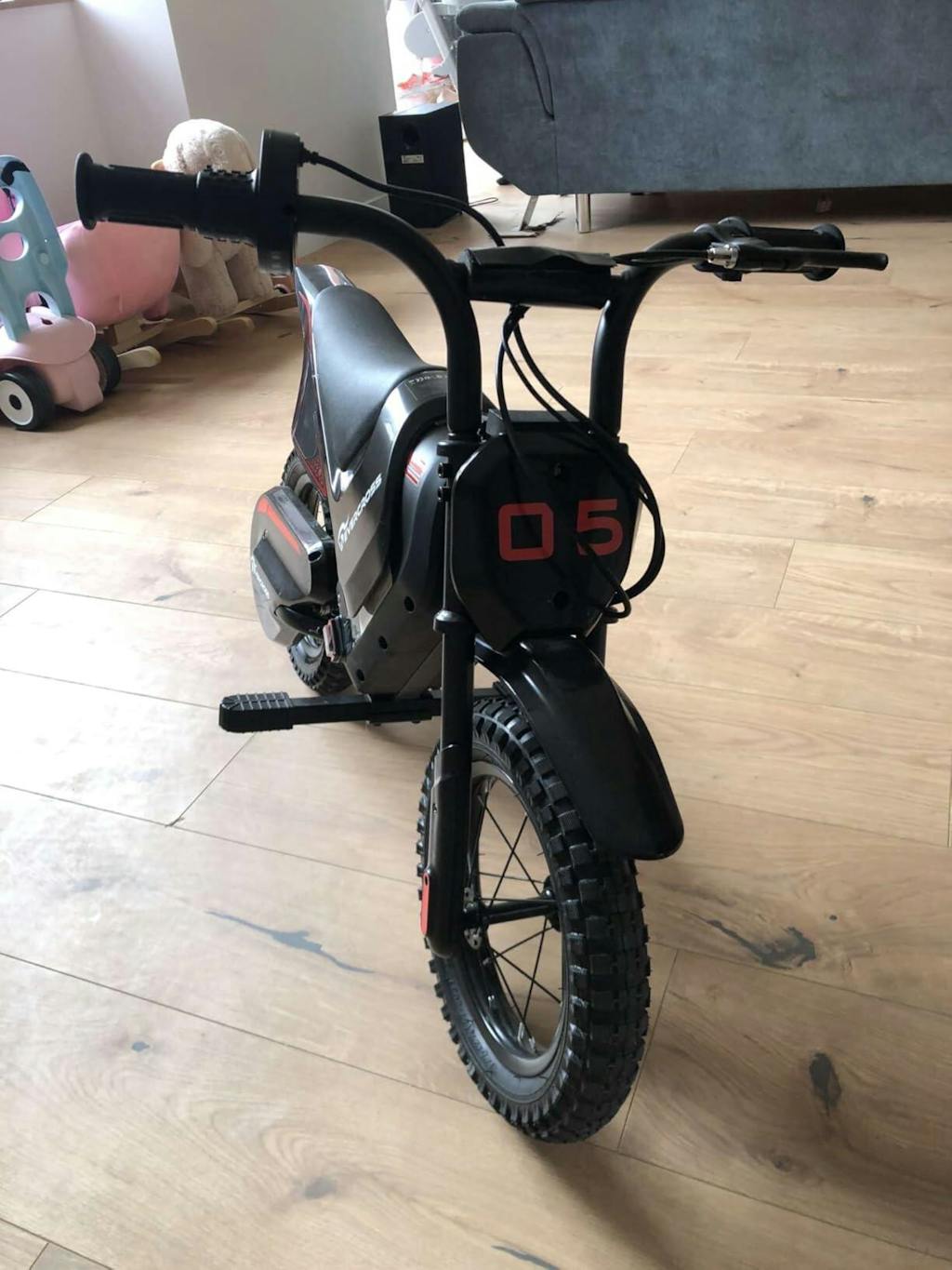 Ausgestattet mit große 12-Zoll-GummireifenDieses Elektromotorrad bietet hervorragenden Grip und Stoßdämpfung und gewährleistet so eine stabile und ruhige Fahrt für junge Fahrer auf unterschiedlichen Untergründen.