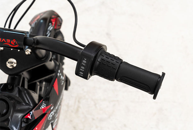 Deux vitesses réglables (8/16 km/h) s'adaptent aux capacités de votre enfant. La batterie 14, 4 V/5, 2 Ah offre 12 km d'aventure par charge.