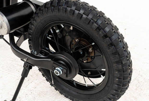 Cadre compact de 11, 5 kg (92, 5 × 54 × 64, 5 cm) avec pneus tout-terrain de 12 pouces pour maîtriser l'herbe, les trottoirs et les sentiers. Idéal pour les 3 à 7 ans.