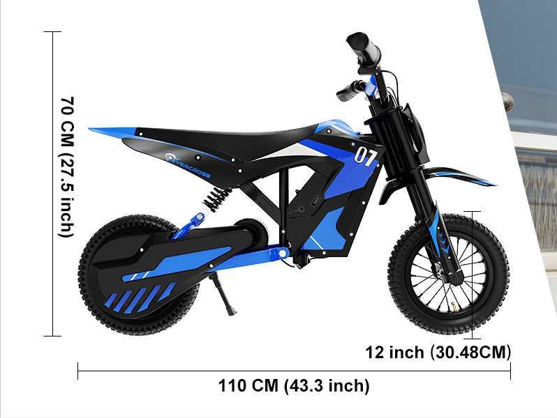 This electric dirt bike is heavy. Please ensure it is carefully assembled by two adults. Before riding, double-check that the bike is correctly installed. The motor emits sound waves that imitate an engine roar, adding extra excitement to the ride.